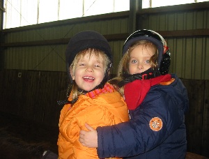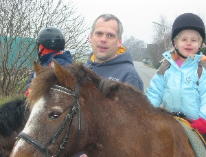 23.02.2007 Ausreiten in Neuland - Christina, Miriam, Linnéa, Papa und ich. Ich reite auf Jaspar.